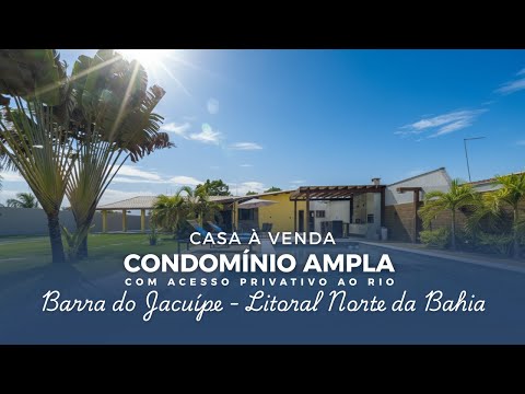 Com excelente localização, dentro do Condomínio Ampla, em Barra do Jacuípe, esta casa fica em área nobre do Litoral Norte, com segurança 24h e acesso exclusivo ao Rio Jacuípe e à praia particular perfeita para lazer e esportes aquáticos. Barra do Jacuípe está em constante valorização, a poucos minutos das demais cidades da região metropolitana de Salvador e com acesso facilitado pela Cetrel para quem vem do interior.